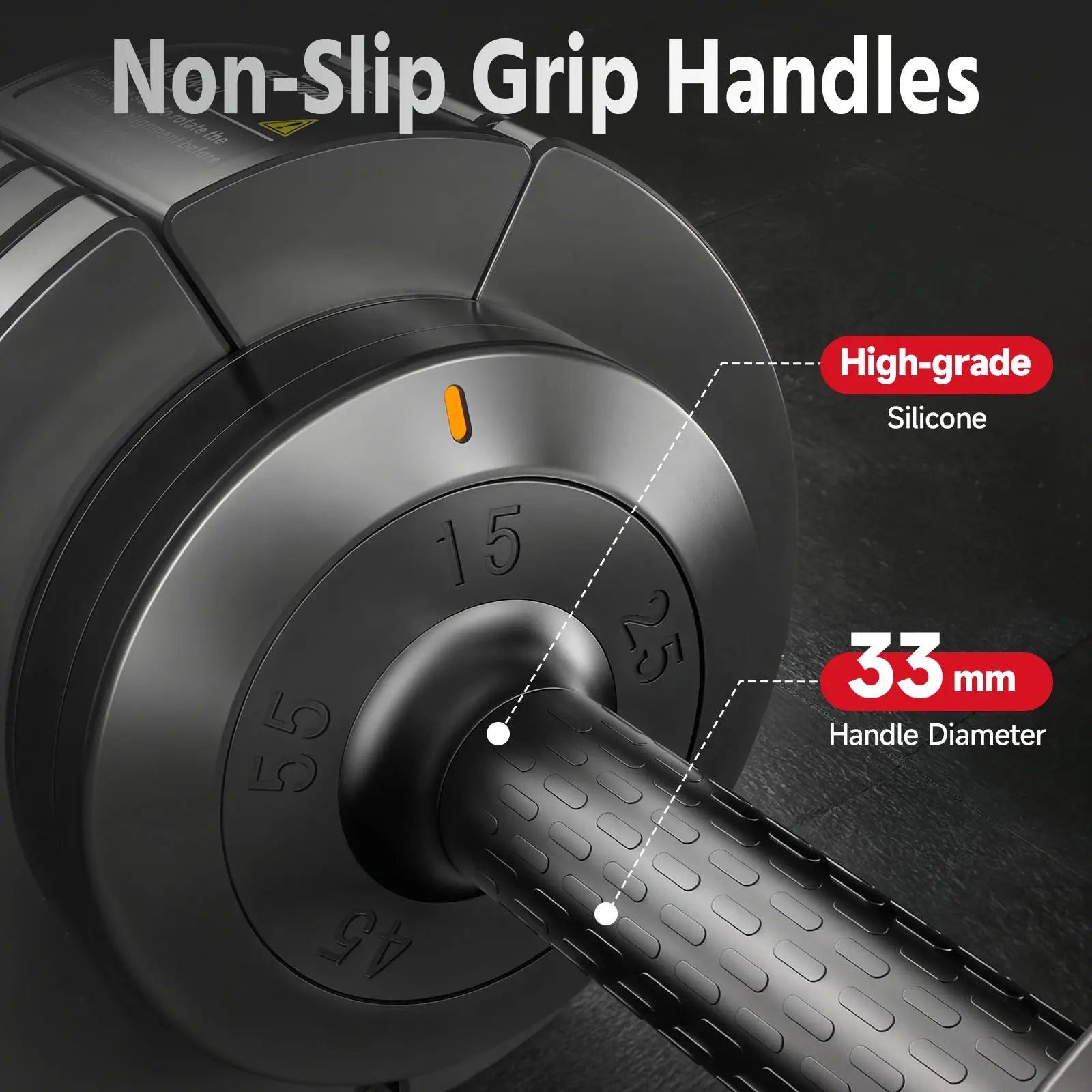 Simply twist the handle, and switch the weight between 15lb, 25lb, 35lb, 45lb, and 55lb.